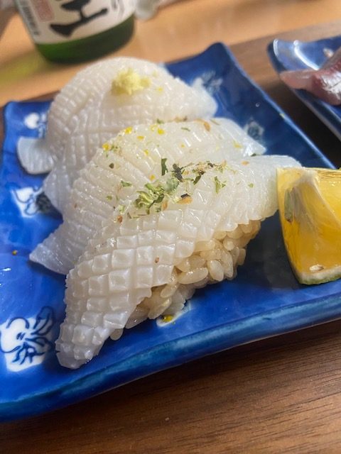 せっかくなので秋に釣ったアオリイカの冷凍ストックも解凍してアオイリイカの鮨も