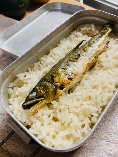焼いた鮎で炊いた鮎ごはんの旨いこと