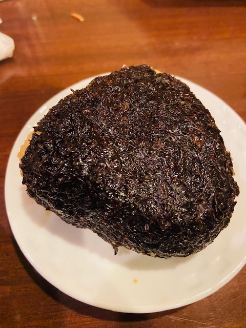 話は戻って、この岩海苔のおにぎり。磯の風味とコリコリ食感、醤油がビタビタに染みた味わいが得も言われぬ旨さ。