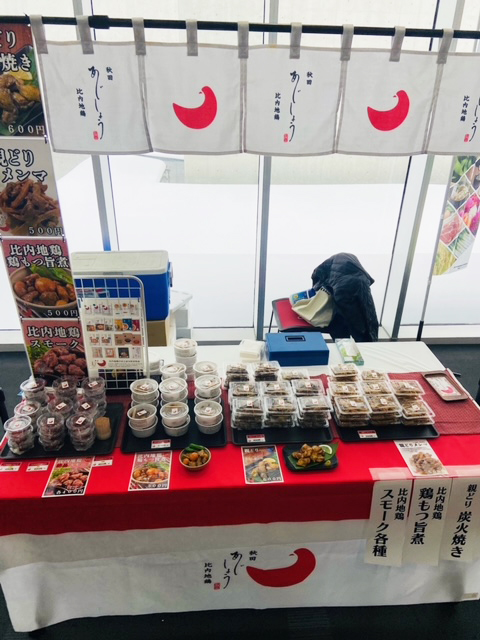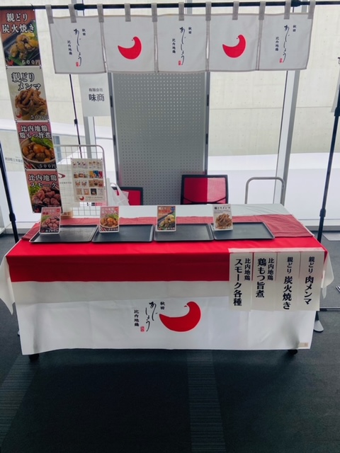 親どり炭火焼き、比内地鶏鶏もつ旨煮など販売予定です。