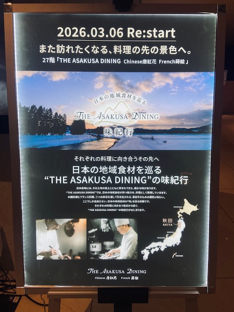 3月6日から4月30日まで浅草ビューホテル27Fのレストラン《THE ASAKUSA DINING》にて、秋田食材を使ったフェアが開催されています。